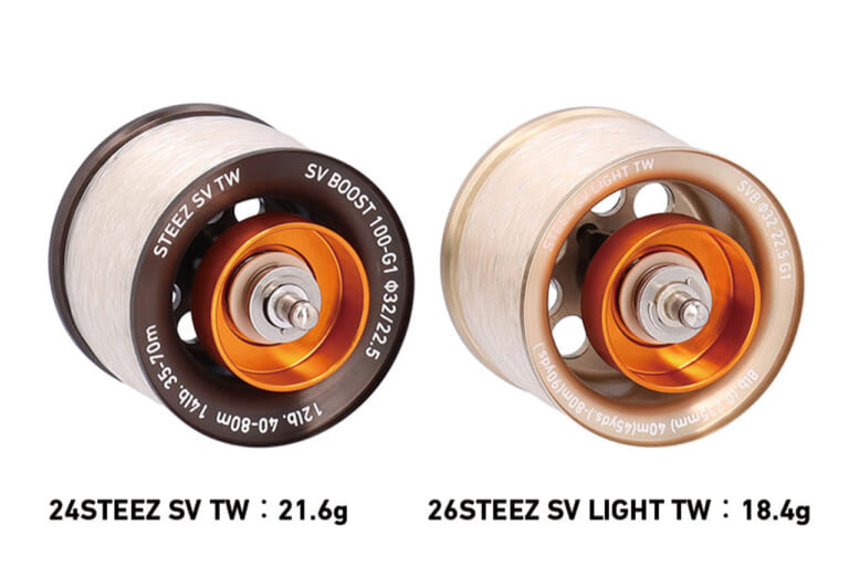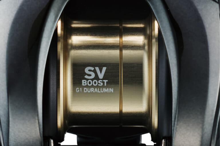 スプールはφ32mmのG1ジュラルミン製SV LIGHTスプールを搭載。『24スティーズ SV TW』よりも糸巻き後で約14.8%の軽量化に成功しており、軽量ルアーでの回転レスポンスが向上。また、『24スティーズ SV TW』から約22%低イナーシャ(慣性)化。