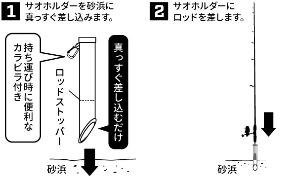 サーフでのショアジギの休憩やルアー交換などでで欠かせないのが、ロッドスタンドやロッドホルダーなど、手から離したロッドを安定して保持してくれるホールドアイテム。古今東西いろんなモノがあるけれども、今回オススメしたいのは『サオホルダー』だ。