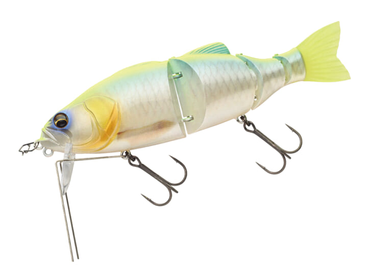 日本のビッグベイトブームのうち、ACミノーに端を発した流れへのイマカツ的回答ともいえるルアーがこのバズビルマグナムだ。ただ巻きだけでもガンガン水を攪拌して泳ぎ、フレキシブルに動くボディジョイントボディから発生する音でもアピールする。