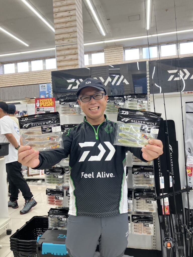 なかでも注目を集めていたのは、イベントに合わせて発売されたアーバンシュリンプの上州屋浜松店オリジナルカラー“浜名湖メロンシュリンプ”と“浜名湖マルチシュリンプ”。お一人で10パック以上まとめ買いされる方もいらっしゃるほどで、注目度は抜群でした。