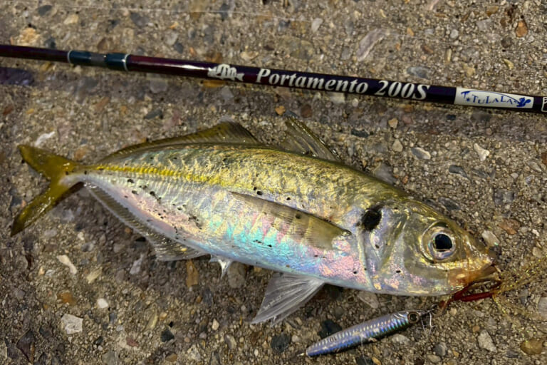 今回は釣り初心者のシェアメイト(女性)と一緒に釣行。アジング自体も初めてでしたが、1時間もしないうちにサクッとヒット!
