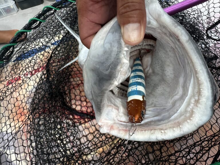 近藤さんの解説通り、このカラーは見た目が可愛いだででなく実釣性能も非常に高い。東京湾でのシーバスや、石垣島でGTを釣りあげるなど実績多数。