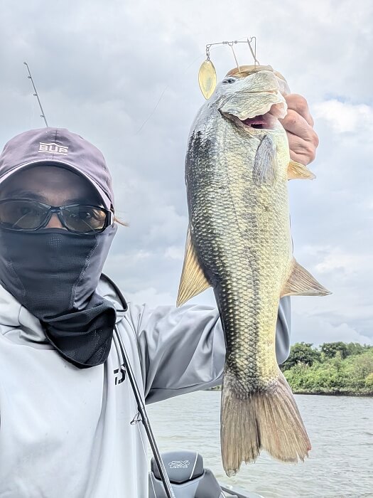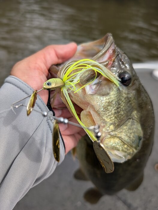 ブレードジグは久しぶりに使いましたが、樹脂素材のブレードとヘッドとの接触音が独特で、警戒心の強いバスにも効くと感じています。