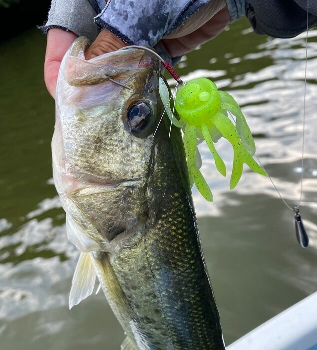 10尾以上釣れて数釣りは楽しめますが…やはり、ビッグフィッシュを釣りたい。ワタカに付いてる個体も一等地のストラクチャー付いてる個体も難し過ぎる。全くバイトありません。「居ないの?」って思うくらい(笑)いや、絶対に居るんですが、ビッグが!