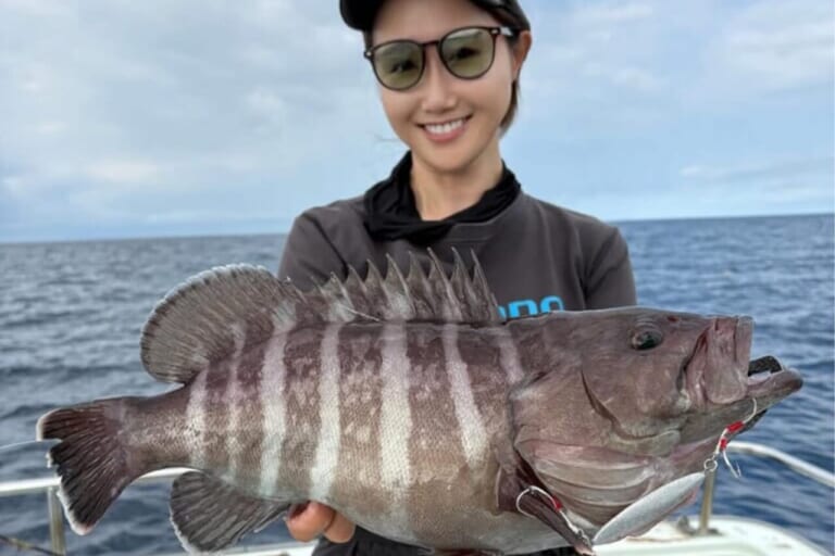 今は自船が届くまでの間 夫の遊漁船「プレジャーズ」で操船練習や船の勉強、ポイントなどを教わっています。