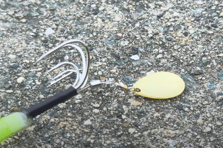 フックは親子仕様の1段タイプ。大型フックでしっかり掛け、小針がバラシを防ぐ。リアにはブレードやタコベイトを装着可能。視覚と波動、両方でアピールできる。