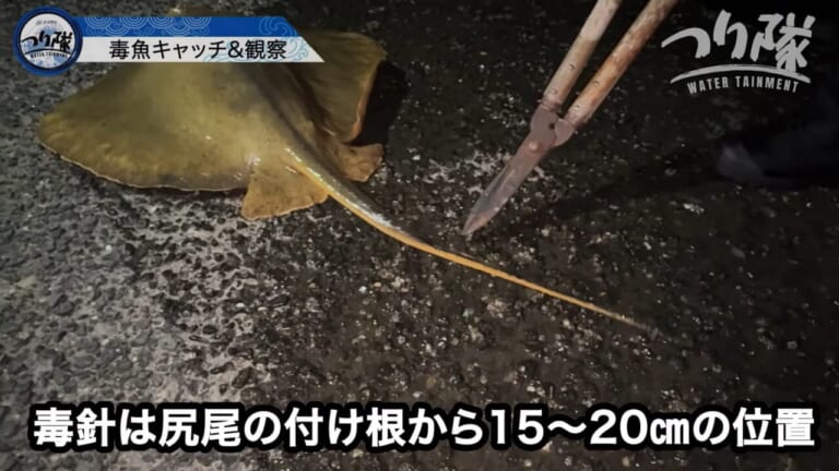 この毒針は非常に強力で、簡単にゴム製の長靴やウェーダーなら貫通してしまう。しかもギザギザとしたカエシがあるため、一度刺されてしまうと傷口が大きくなってしまう。
