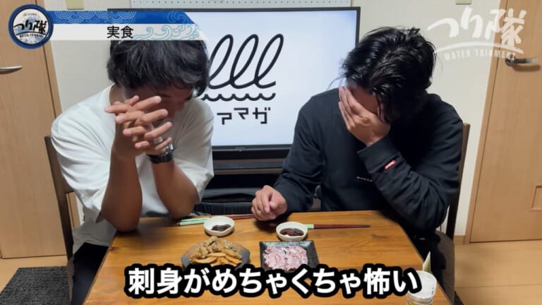見た目も相まって、刺身を食べる勇気が出ない二人だが、意を決して食べたうるしー。