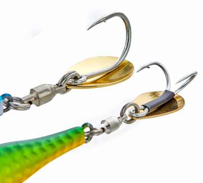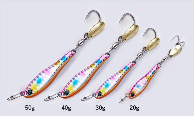 青物ならではの強烈なパワーへの対策も万全で、30g、40g、50gの3サイズでは太軸シングルフックを採用。各サイズのスプリットリングも太めの平打ち仕様を搭載しているので、強引なパワーファイトでも破断したり伸ばされたりするリスクが非常に低くなっている。
