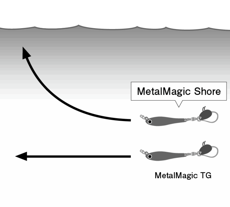 秋になると食べ頃に成長したベイトフィッシュの群れが沿岸部に回遊するようになり、それを狙って後を追うように回遊するのが青物。そう、秋は岸からでも青物が狙える貴重な季節で、特に朝夕マズメ時は岸沿いにアングラーが隙間なく並ぶほどアツい時期だ。そんな群雄割拠な状況下で少しでもアドバンテージが得られるルアーがあれば…あるヨ! それが『メタルマジック・ショア』だ!!