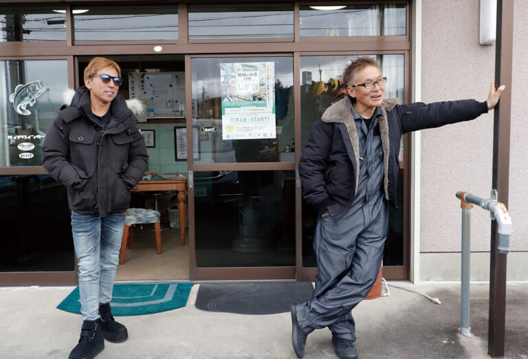お互い縁のあるレンタルボート店「ひさの屋」にて。店主の立田猛さんは、実兄が村上さんの師匠である立田博氏。先代の店主・立田清氏は、若き日の奥村さんにとって恩人的存在。https://www.eonet.ne.jp/~hisanoya/