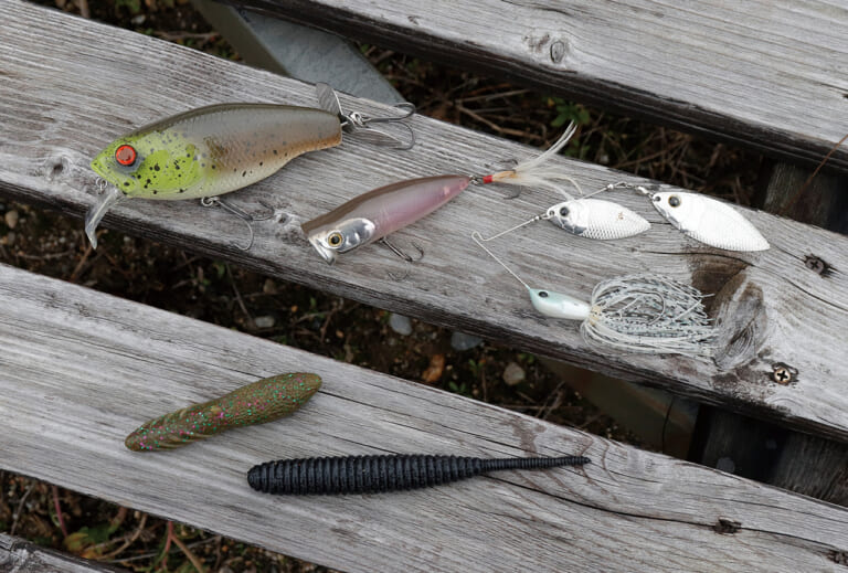 デプスのルアーは遠投能力に優れていることが一つの条件。バズジェットマグナム、パルスコッド、Bカスタム、カバースキャット、デスアダー。どれもがよく飛んでくれる。ビッグバス狩りには安全な距離が必要なのだ。