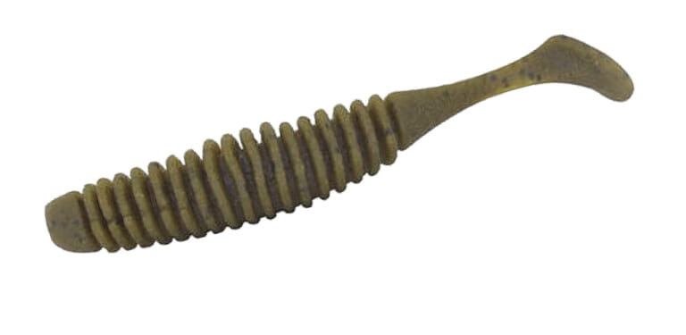 フリーリグで使うのですが、フォール時のテールアクションのレスポンスが抜群にいいのがこのワーム。シンカーウエイトですが、ぜひとも1/2ozを試してみてほしいです。重めのウエイトですが、これによってストンとボトムまで落とすことができる。底を壁と見立てて、バスに追い込ませるイメージですね。このとき、フォールで食ってくるようならバスは中層より上に、フォール後のズル引き中に食ってくるならバスはボトム付近にいる、といった具合に、バスのレンジ感を判断することができます。