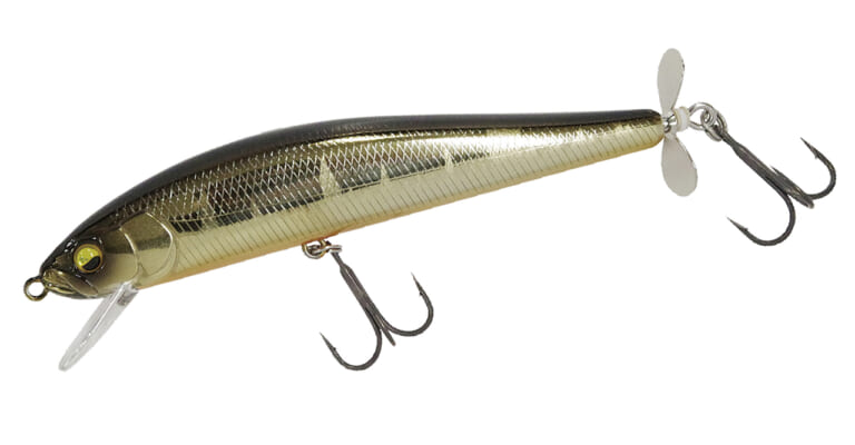 あまり言いたくないんですが(笑)、紀の川ってウエイクベイトがものすごく釣れるんです。なかでもおすすめなのがこれ。夏はアンサーだけで釣りができるレベルです。アユが跳ねる姿そっくりな動きを出せるのがイイですね。ストレートリトリーブで線を探って、リッピングで点を釣ります。大切なのはナイロンラインの14~16lbを使うこと。ラインの重さの影響を受けにくくなってレンジ感が変わってきますよ。