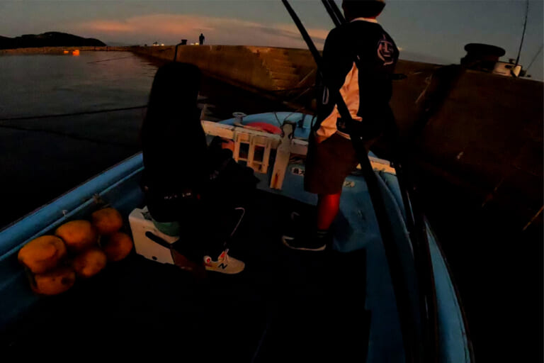 さてさて朝日も登るか登らないかどっちなんだい、という釣り人としては最もテンションが上がる時間帯に我々リコルド鈴木会の面々は島原のブラックパール号に乗り込み沖の堤防へ。