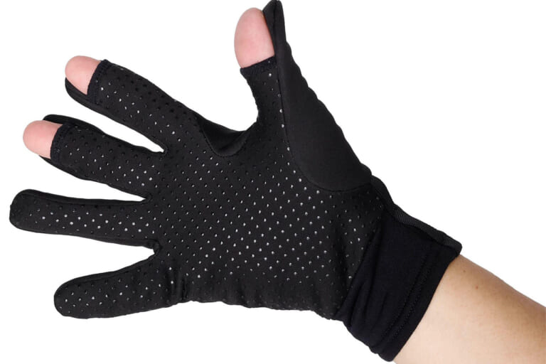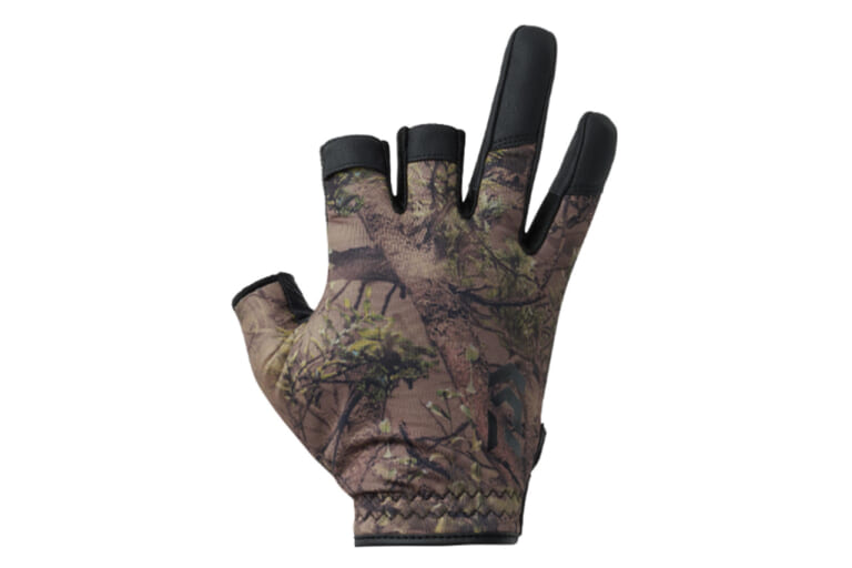 掌には薄手の合皮を使用し、ルアー操作やバイト感知に必要な手感度を最大限確保。指先には脱着を素早く行えるタブを備え、ストレスのない使用感を実現している。