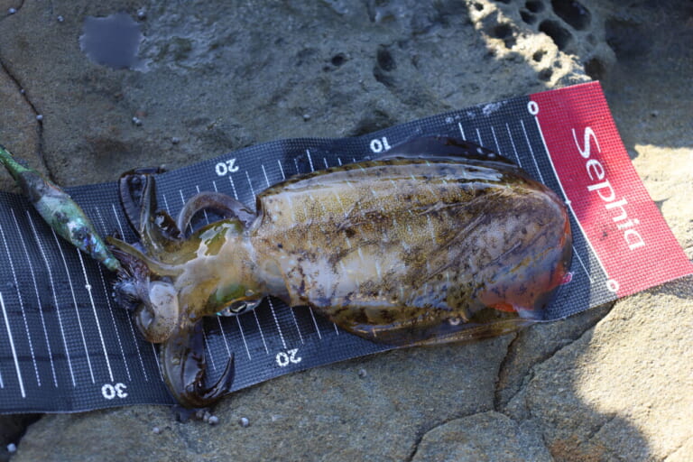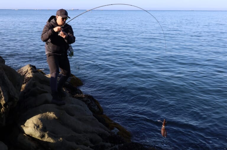 確かに髙橋さんに地の利はあるが、朝の時間帯に上げ潮のタイミングに合わせて磯を選び、狙いどおりにアオリイカを釣ったのはさすがだ。