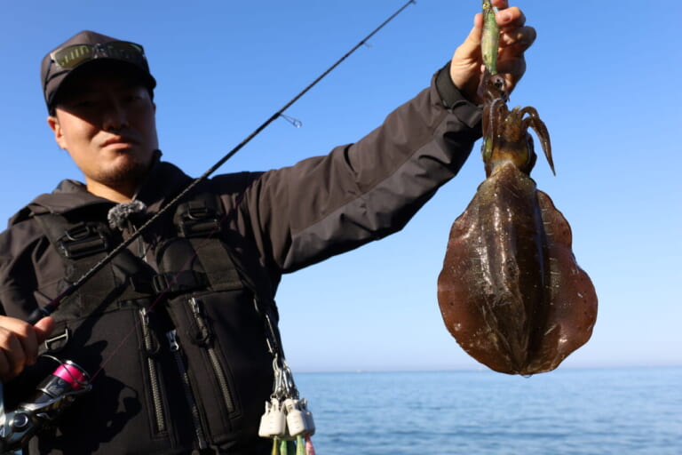 髙橋「昔はこんなシャローでイカが釣れるとは思っていなかった。南紀(和歌山県)で湯川さんのガイドを受けてからです、シャローを釣るようになったのは。おかげで数もサイズも釣れるようになりました」