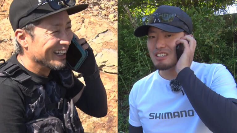 湯川さんの実釣は決定打が出ないまま昼を迎え、ここで2人は電話対談。釣果は伏せて相手の釣況を探りあった。