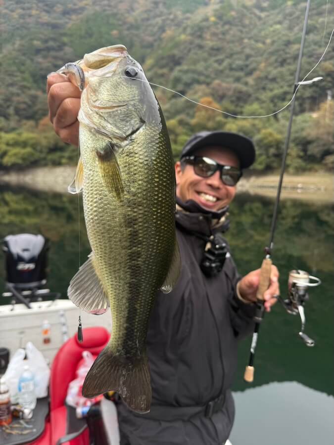 自分は完全不発で…魚がいるスポットでスローダウンして魚を触らせてもらいました。安定感抜群のフィネスティック3.5inch、5gDS にてキャッチすることに成功。