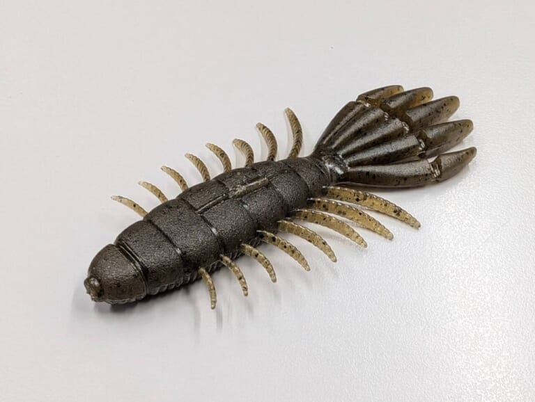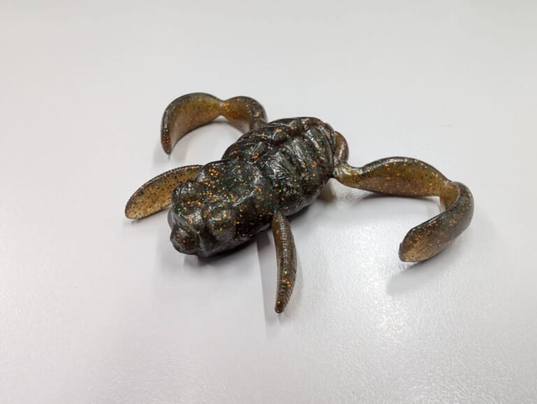 テキサスリグやリーダーレスDSを用いたカバー撃ちで多用される、ホッグ系やギルシェイプとは異なるタイプでイメージが湧き、着手。コンパクトながら水押しが強く、フォール中にもロッド操作においても食い渋った魚に効果的なアクションの質を備えること。まだ1次試作の段階で、まだまだ・・・これを叩き台に、20か所ほど見出された修正を進めているところです。