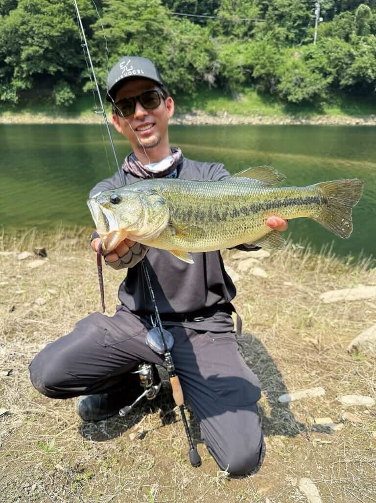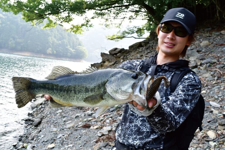 本人は「迷走している」と焦りを見せていた前半。しかし、岸際にロングワームをアプローチして食わせるテクをまず確立。納得のいく1尾だったようだ。