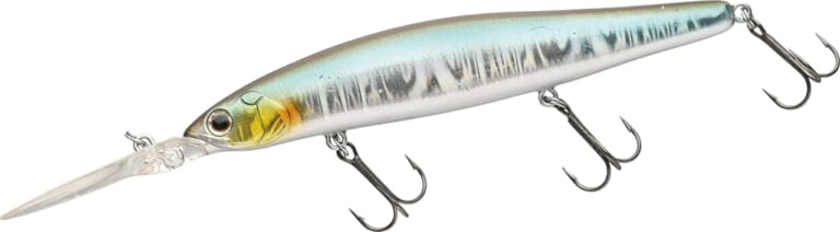 よく飛んで、使いやすいロングビルミノー。ジャークだけでなく、巻いても釣れるのが持ち味。三宅さんはただ巻きでボトムや壁に当てて使うのだが、その際に、C73ML+の感度が生きるという。