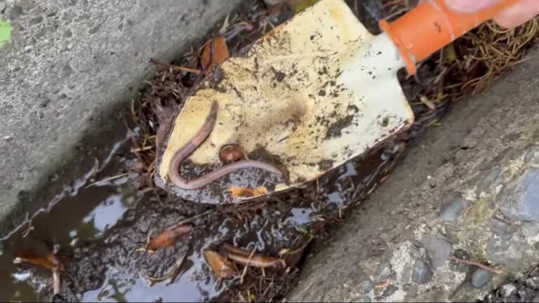 まずは餌探しからスタート。湿った土を掘ると、極太のミミズが顔を出す。これこそが天然の最高級の餌。匂いと動きでウナギを誘う。