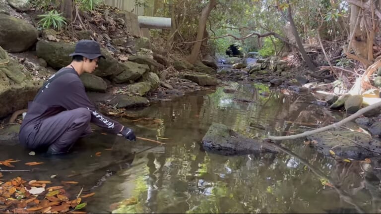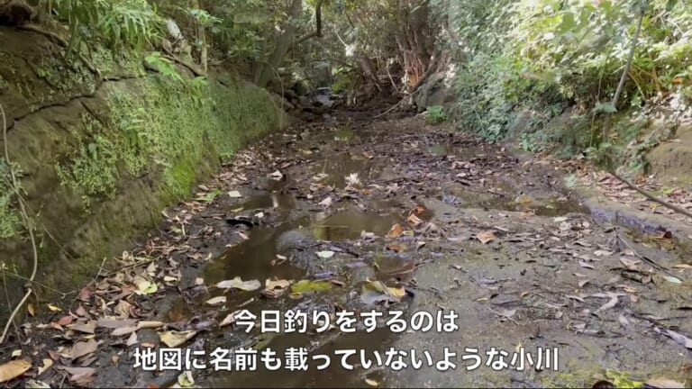 釣り系ユーチューバーである「たくわん」さんは穴釣り仕掛けを手にウナギを狙った。釣り車中泊の旅の一幕、舞台は名前もない小川。