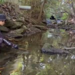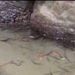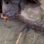 |「よっしゃ!」「食った!」ミミズのついた『木の枝』を岩陰に突っ込むと…?  20万回再生された“穴釣り”に反響多数。