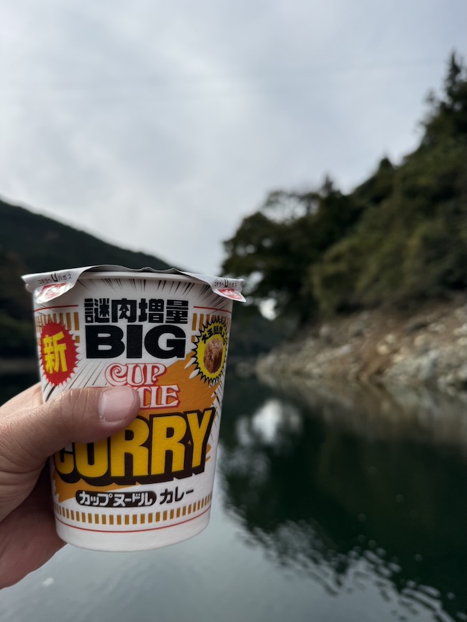 船の上で食べるカップラーメンは格別です! ちなみに自分はカレー派です(笑)。