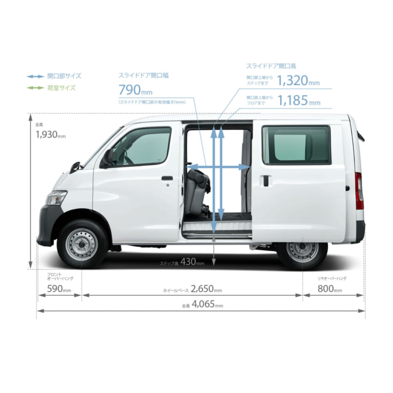 大きく開くスライドドアも便利で、大きな荷物も簡単に積み下ろしができる。