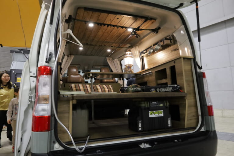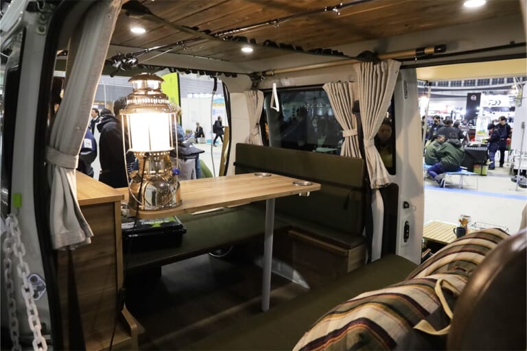 フィッシングショーに展示されていたタウンエースのライトキャンピングカー。街乗りしやすいボディサイズに、「もはや家」と言えるほどの快適空間が詰め込まれていた。