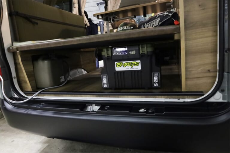 さらに、ベッドキットの下部にもスペースがあるので積載性もバッチリ。バッカンやクーラーボックスなどはここに収容したい。