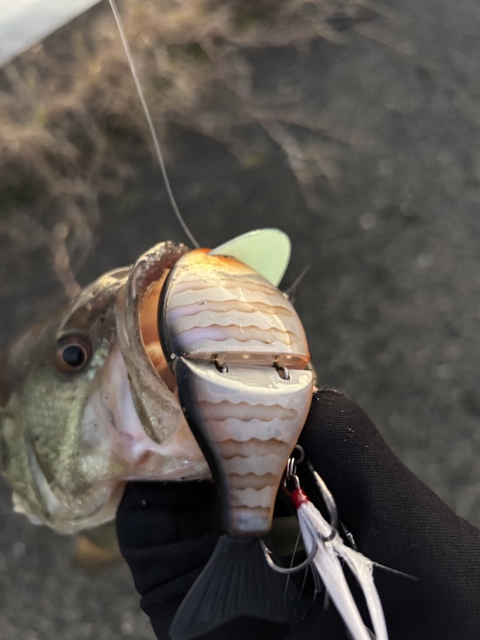 低水温期は定番のアラバマ。具はスティーズリアルスラッガーR3.7インチです。