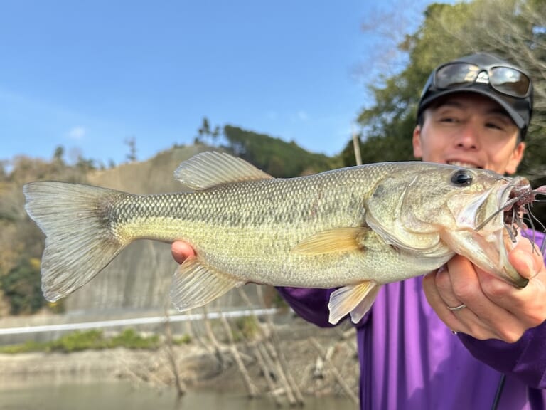 難易度はかなり上がっていますが、少し水に色が付いている場所かつベイトフィッシュが絡んでいる場所ではバスをキャッチできました。ただ 少し水深があるような場所じゃないとなかなか食ってこない ですね!