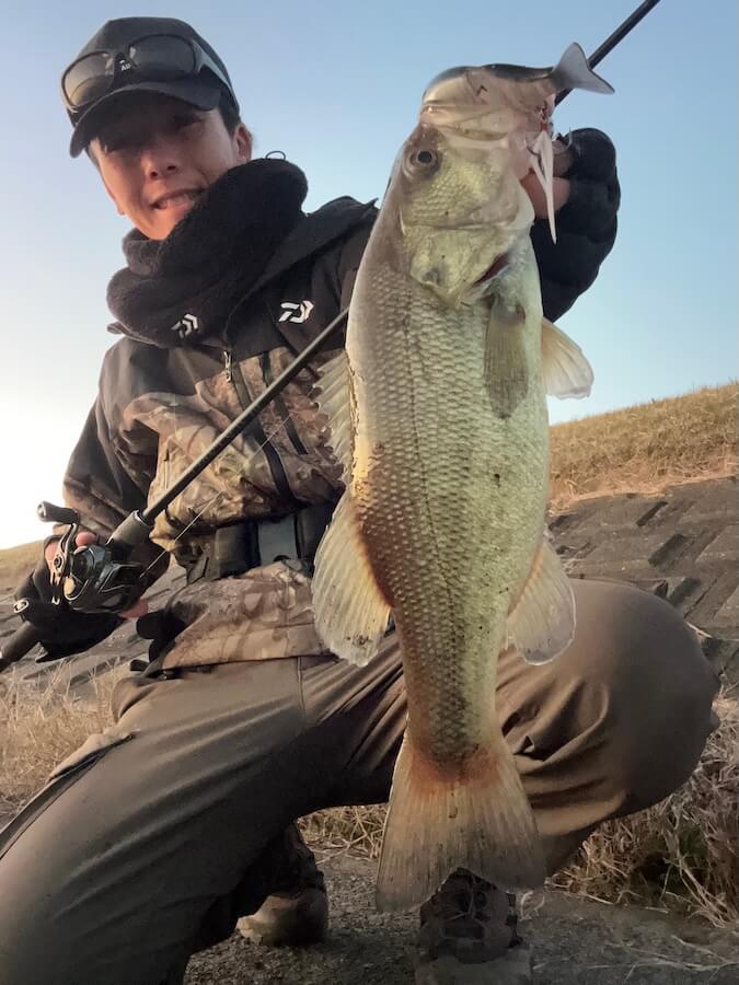 超極太な1本! 長い距離をひたすらテクトロしながらバマストで、夕まずめ最後の最後にキャッチでした。