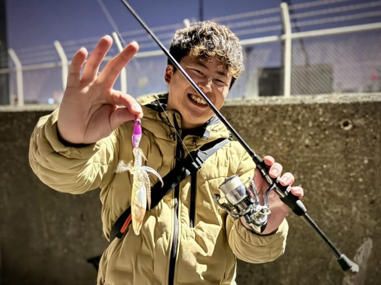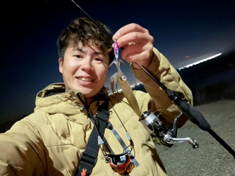 今回、東京湾奥に出向いてテンタコの釣果を報告してくれたのは、村端 駿佑さん(リチャーズ)。先に紹介したように、アジングが楽しめそうなエリアには高確率でこのヒイカが着いてることが多く、それを狙って釣れるのだそうだ。