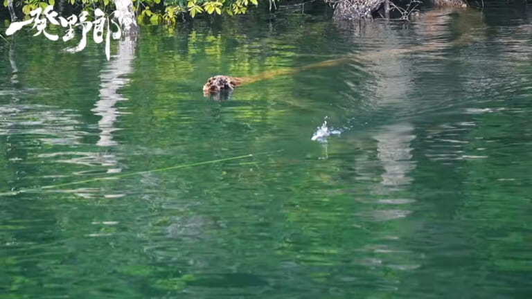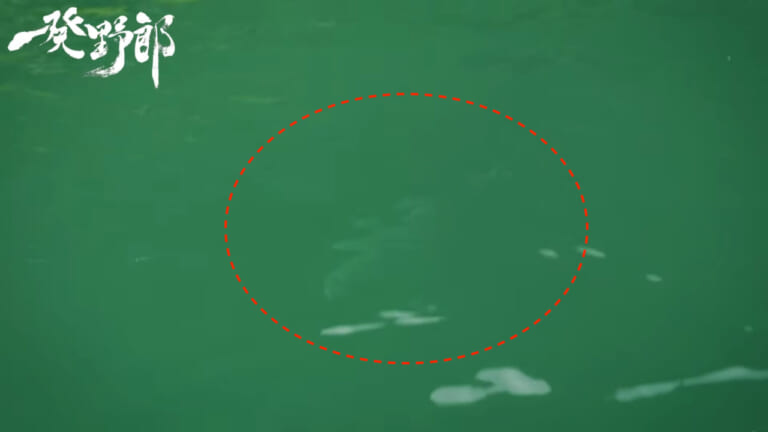 NZクローラー(デプス)に忍びよるスモールの魚影。バイトまであと少しでUターン。キムケンさんのアタマはバグっていない! 喰わなくてもエキサイティングな釣りを展開。