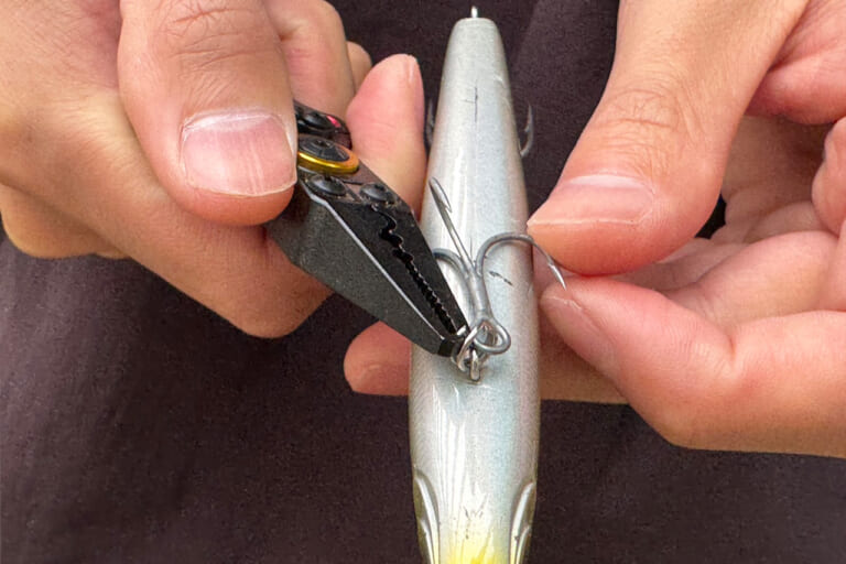 先端部のスプリットリングオープナーは、#0の小さなサイズから対応可能。このサイズ感だからこそ細かい作業もやりやすく、実際に使用した際もスムーズにフックを交換することができた。
