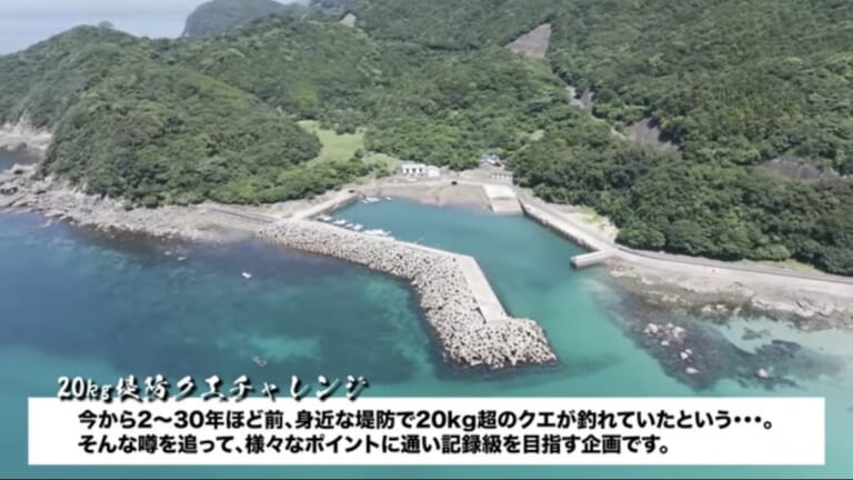 堤防でクエを狙う。その言葉を聞いて、どれほどの釣人が本気にするだろうか。クエといえば、荒磯。沖磯。巨大な根と荒波に囲まれた選ばれし者のフィールド。舞台は島の小さな堤防。「ここで、20kgを超えるクエがあがったらしい」という幻の噂も。真偽はわからないが、ユーチューバーであるヨネスケさんが挑む。