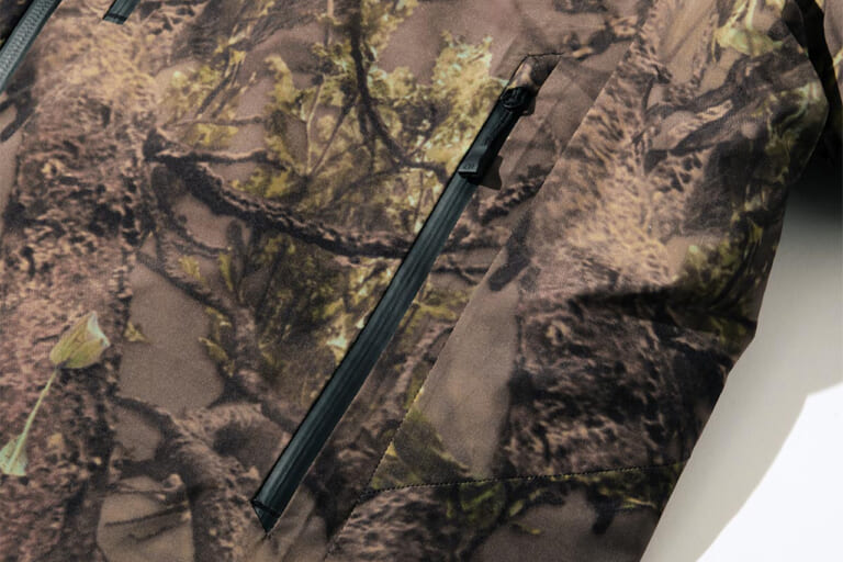 さらに各ポケットには止水ファスナーを搭載し、スマートフォンや財布などの荷物を濡れから保護。袖口には内袖カフスを配し、腕の動きによって水や雪が入り込みにくい構造となっている。