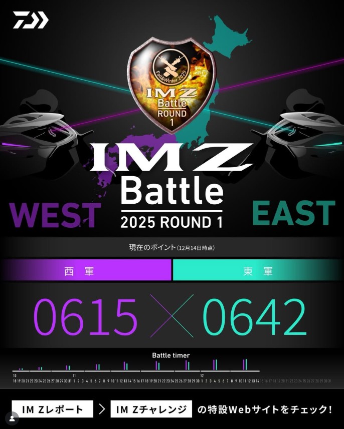 IM Zバトルは、IM Zを使って実際に釣りへ行き、その釣行・投稿がポイントとして加算される、東軍 vs 西軍の参加型イベントです。