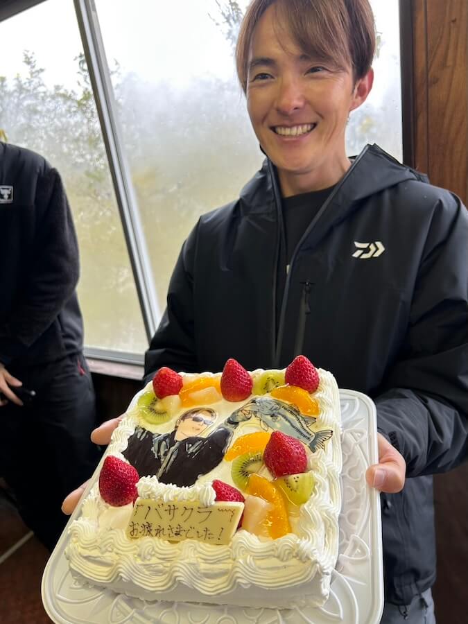 食事会では光大郎さんのオールスター準優勝&ビッグフィッシュ賞お祝いのケーキがとっても素敵でした! ケーキに書かれたイラストはもちろんあのシーンですね。