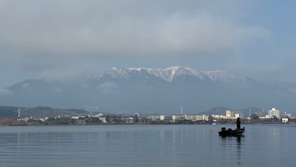 大西健太さんの2025年最後のレポート。滋賀の山々は寒波で雪景色に。冷え込んでいますがスイミングジグの巻き展開は健在。グラスリッパーは新色のアバロンシャッドとブラックアバロンがいい感じです!