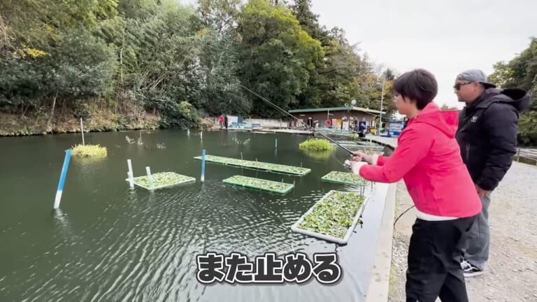 群馬県にある管理釣り場・宮城アングラーズヴィレッジでバスフィッシングに挑戦。それぞれの担当するルアーの実物(通称:オリジン)で釣るのが目的だ。