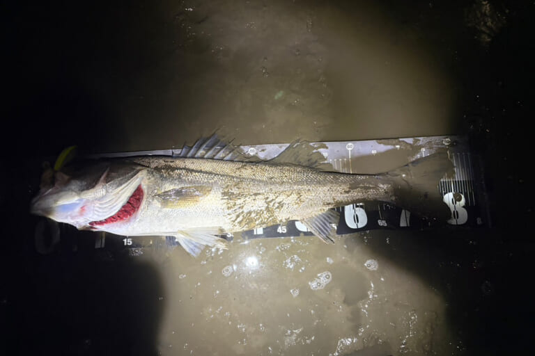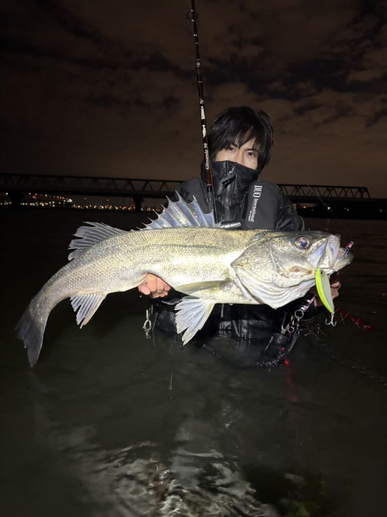 釣れた時間は年が明けて14分後の午前12時14分。2026年、おそらく日本最速のランカーシーバスではないでしょうか!?