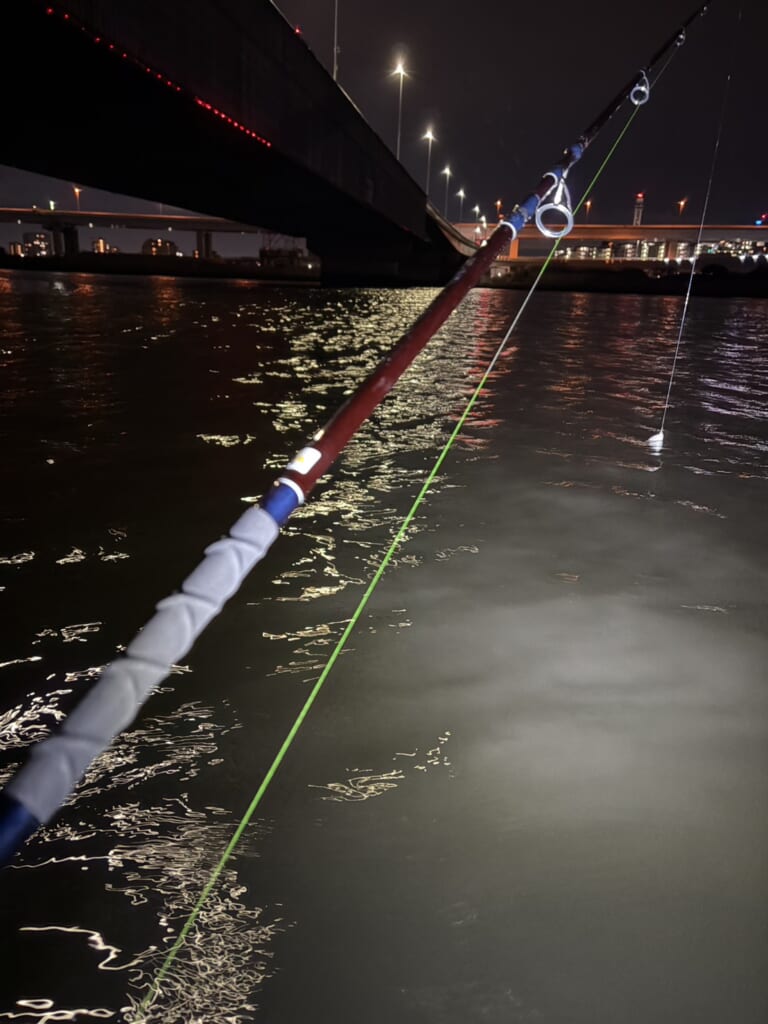 そんなわけで、12月31日午後23時から年越し釣行スタートです。タイミングは上げ潮の2分くらい。釣りをしていたら年明けの瞬間なんて気づかないかなと思ってましたが、さすが東京。どこからともなく水辺にも賑わいの声が聞こえてきてすぐに分かりました。