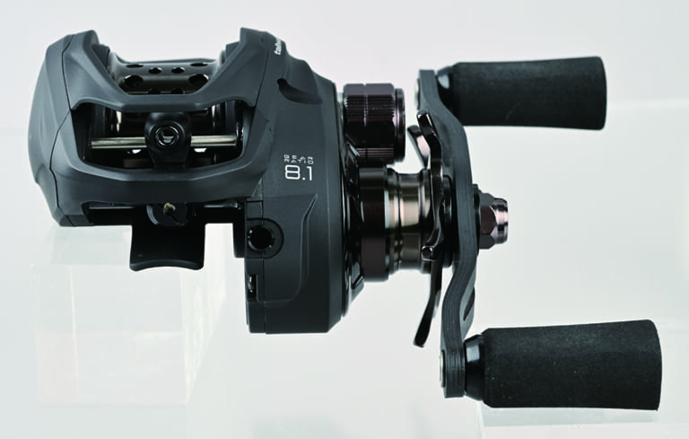 「私の場合、1台はノーマル状態で8lbを巻いてライトプラッギングがメイン。もう1台はオプショナルスプールに換装して14lbを巻き、ビッグベイトやフットボールジグに対応させています」と中村さん。元来が優れた剛性のボディのため、ベイトフィネスのみならず多彩な釣りで活用が可能だ。