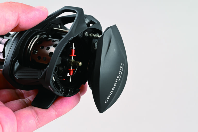 サイドプレートはワンタッチで開閉が可能。ノーマルからオプショナルスプールへの換装にも無用な時間を要さない。